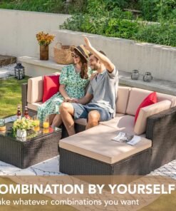 5 Pieces Patio Furniture Sets All Weather Outdoor Sectional Patio Sofa Manual Weaving Wicker Rattan Patio Seating Sofas with Cushion and Glass Table(Beige)
