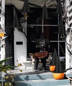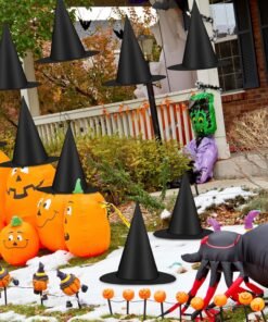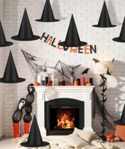 12 PCS Halloween Witch Hats, Black Hanging Witch Hat, Witch Costume Accessories Witches Hat with 328 FT Nylon Cord Wizard Hats Indoor Outdoor Halloween Decorations for Home Yard Porch Ceiling