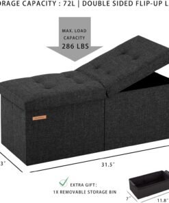 • ??Value Pack??: Specifications: Overall – 31.5″ L x 13″ W x 13″ H; Folding – 31.5″ L x 13″ W x 2.3″ H; Capacity: 72L; Max. Static Load Capacity: 286 lbs; With the flip-up lid design, one removable storage bin is also included.