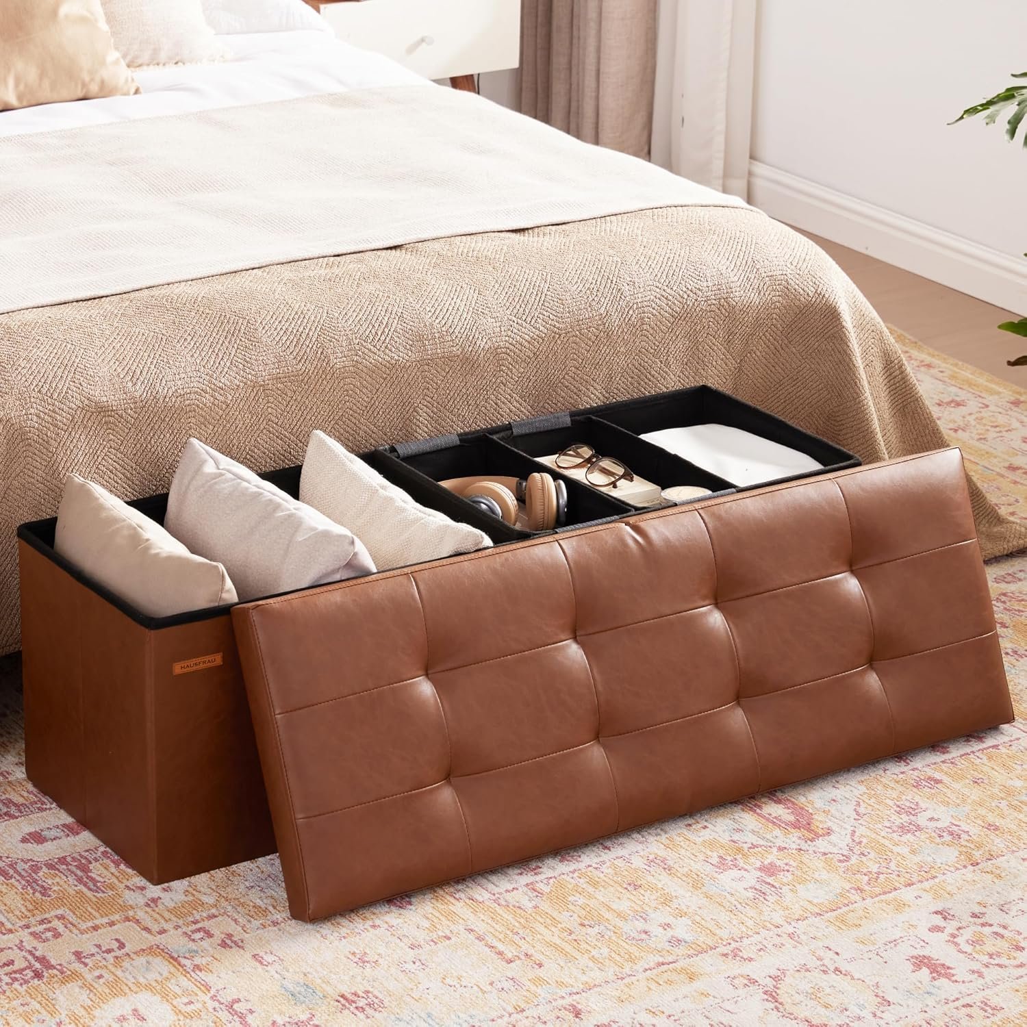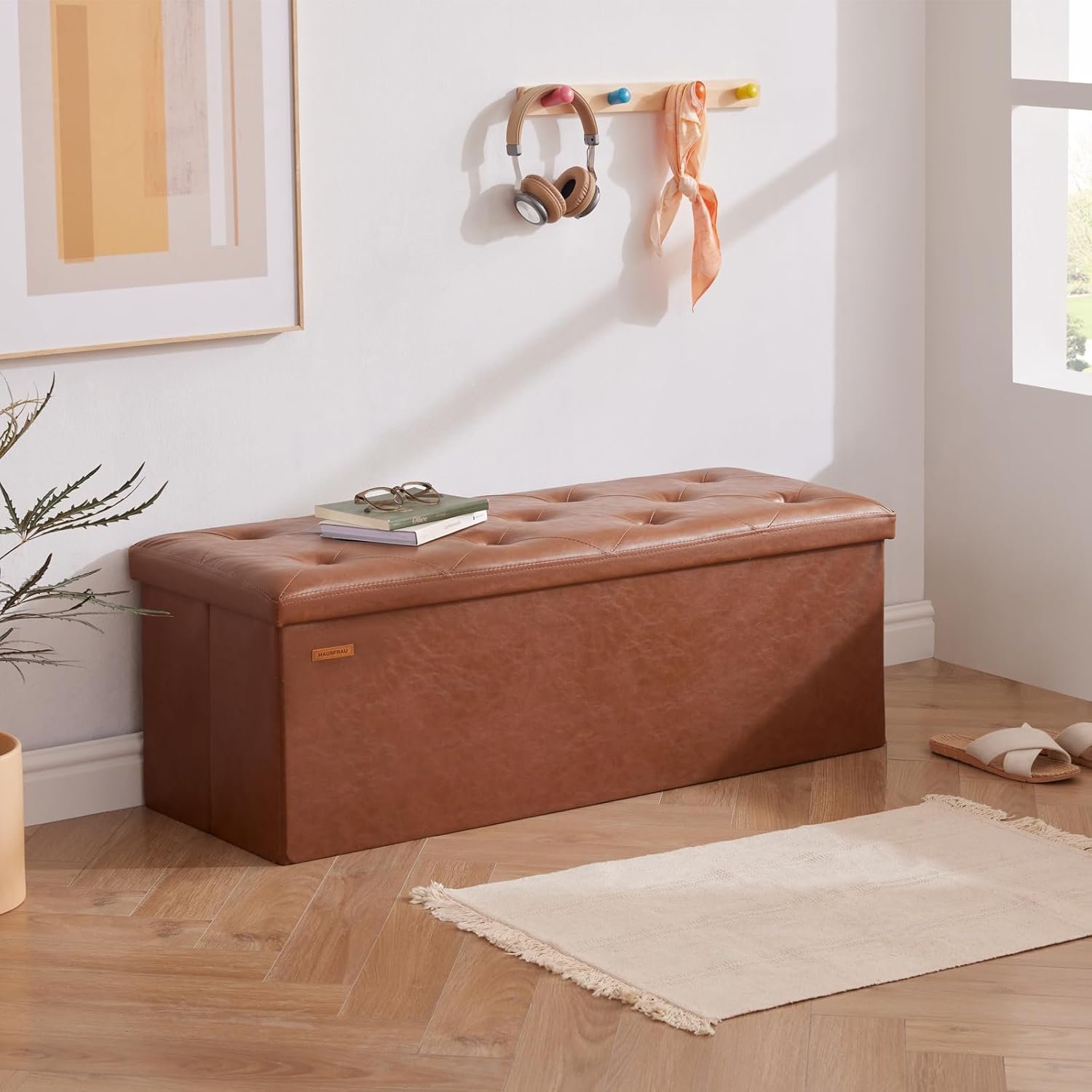 Easy to use: With a simple manual with intuitive graphics, you can quickly set up a storage ottoman in a short time. When not in use, it is easy to fold and takes up less space, making it an ideal storage solution for small spaces.