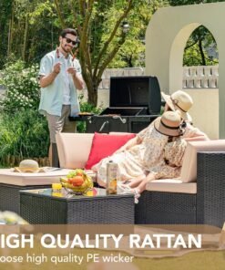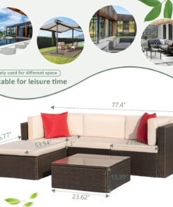 Be the first to review “5 Pieces Patio Furniture Sets All Weather Outdoor Sectional Patio Sofa Manual Weaving Wicker Rattan Patio Seating Sofas with Cushion and Glass Table(Beige)” Cancel reply
