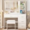 - ??Makeup Vanity with Lights in 3 Colors?? Black vanity comes with 10 lights bulbs can be switched 3 different color temperature (cold white/ warm white/warm yellow), providing you with the perfect ambiance for your makeup and daily skin care. And the brightness of each color can be adjusted. Meet your needs for different environments and makeup looks. For home make up, salon or live broadcast.