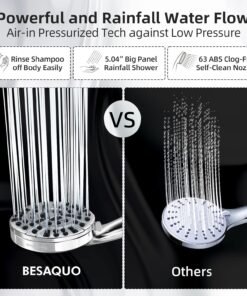 - HIGH PRESSURE SHOWER HEAD: Our USA designed shower head maximize water pressure with Air-in Tech against low pressure condition. BIG PANEL and NO CLOG Nozzles desgin insure no accumulation of grime, massage muscle, soothing fatigue, and quickly rinse hair